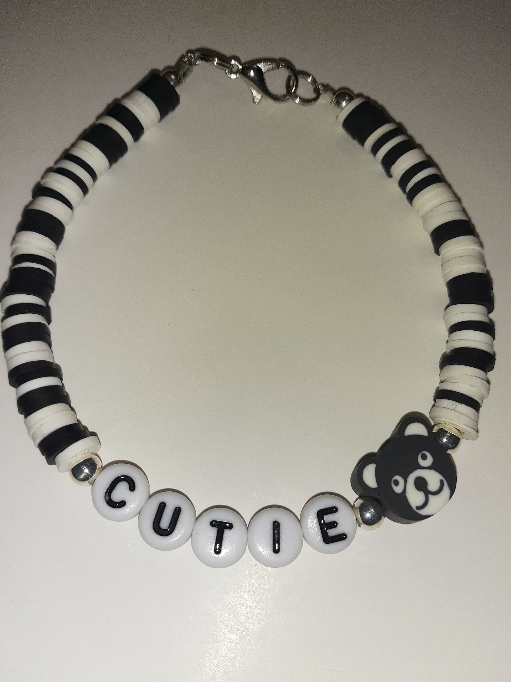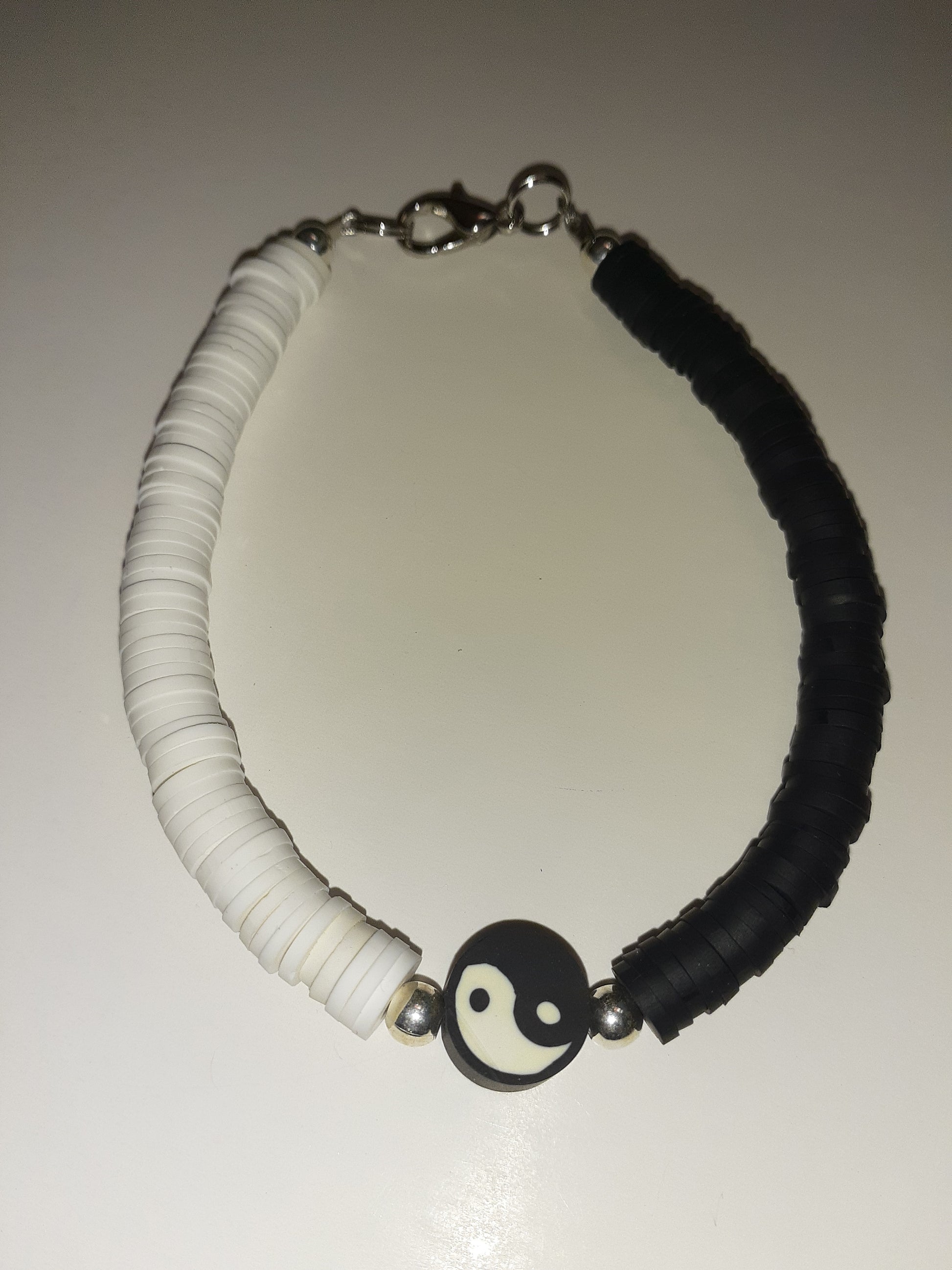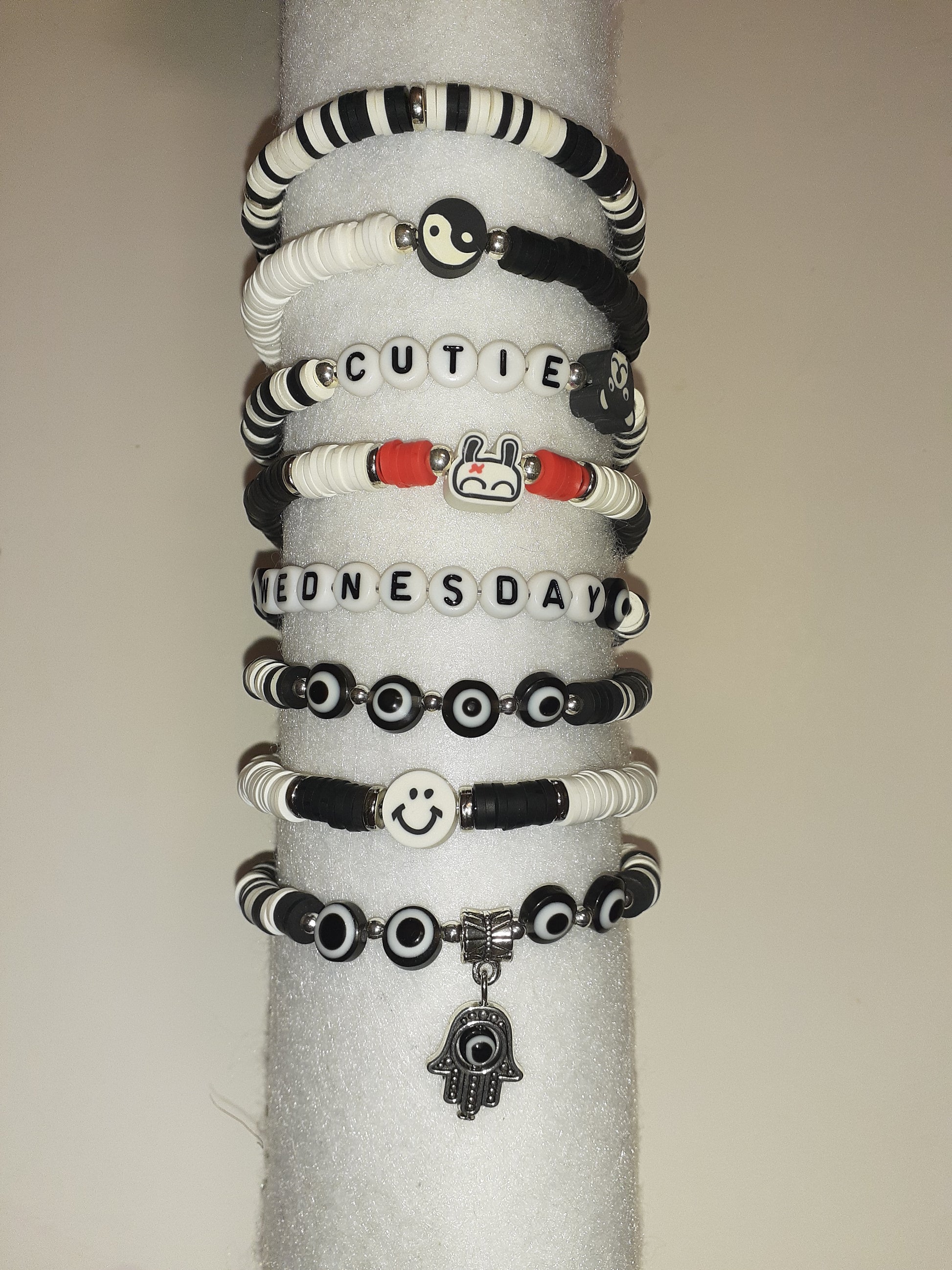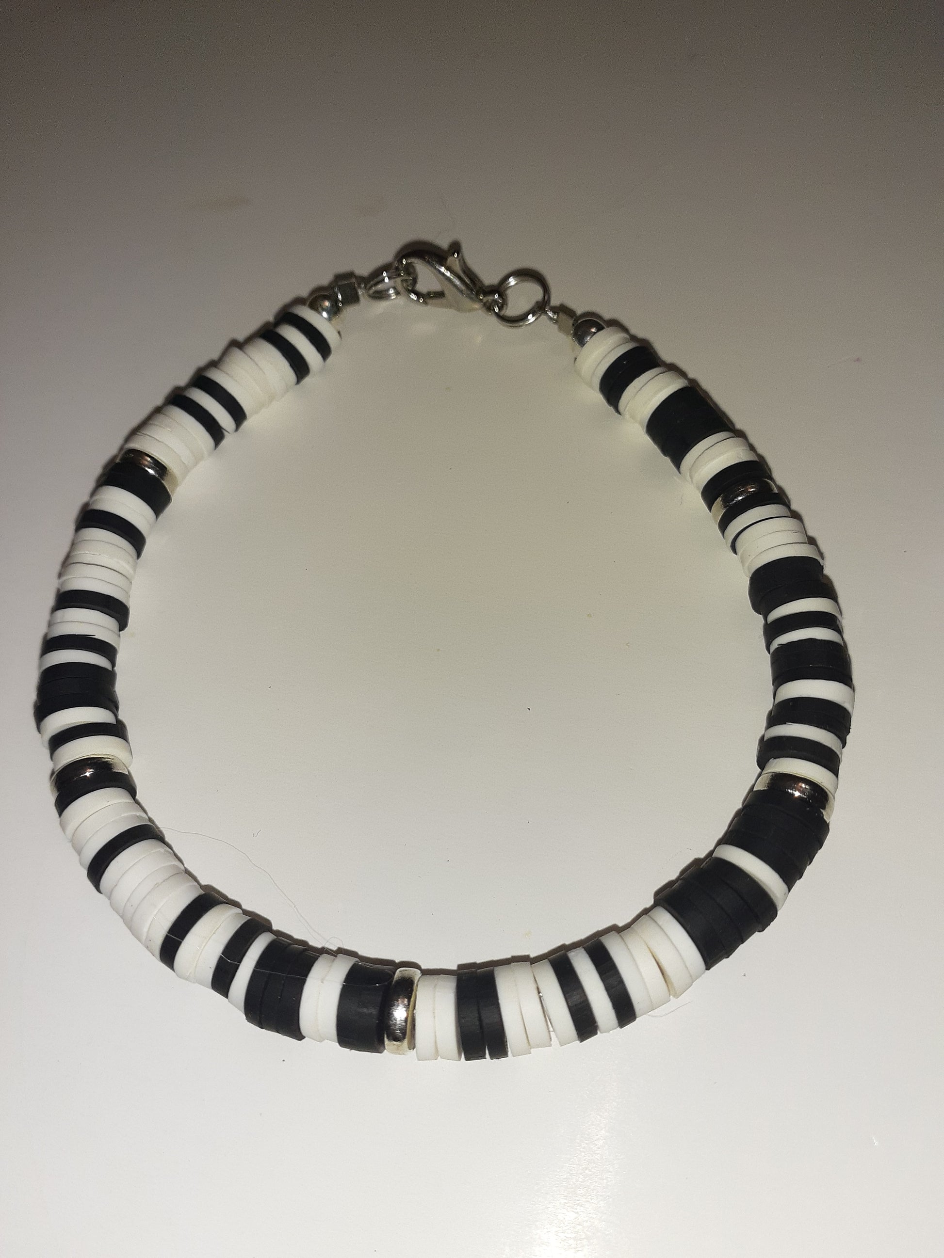 These clay disc or heishi bracelets come in a variety of styles. They are about 8 inches long, once purchased I'll add a extender chain to it. These bracelets are made of wire and the closure is a lobster clasp.