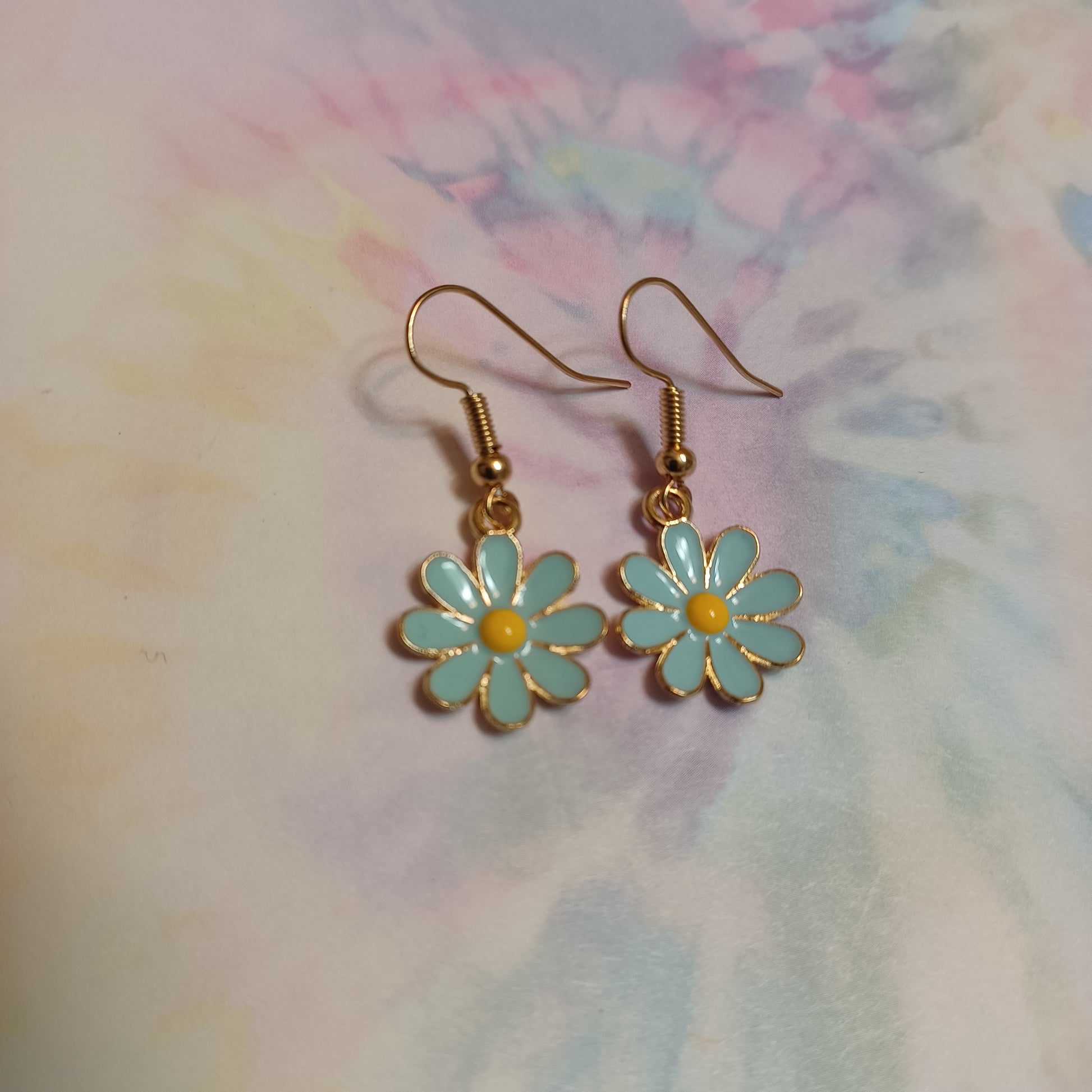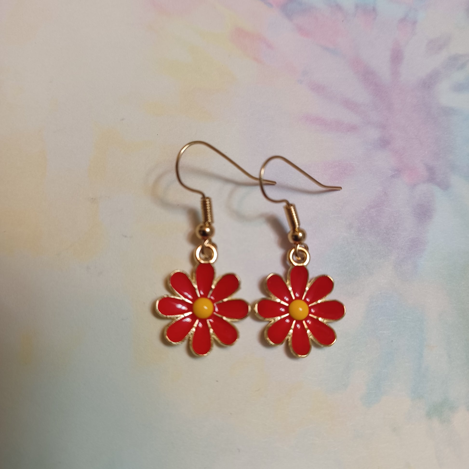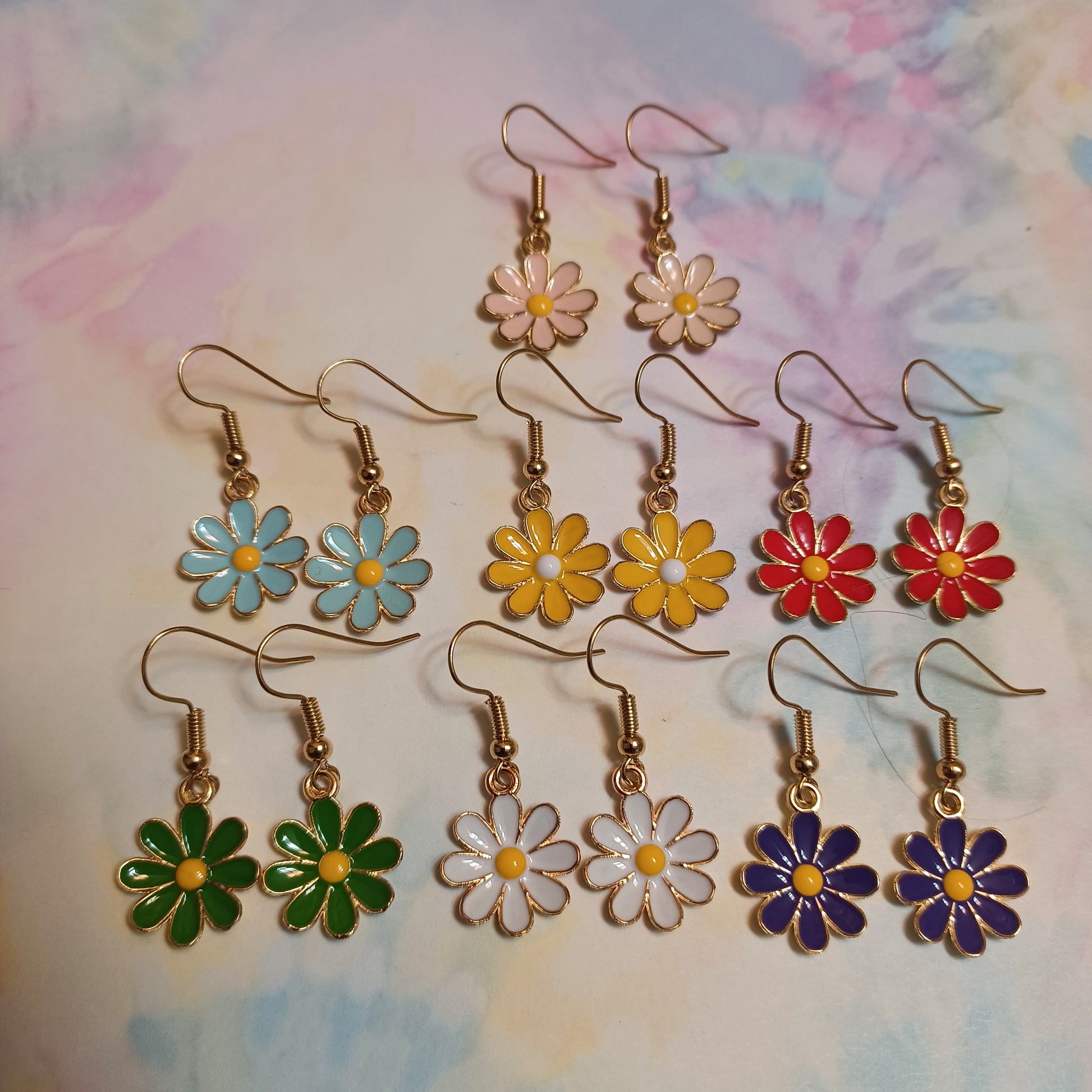 These beautiful Daisy flowers earrings are colorful and can be worn any time of the year. The back of the earrings have a gold tone color and they are about the size of a dime. The ear wire is made with hypoallergenic material