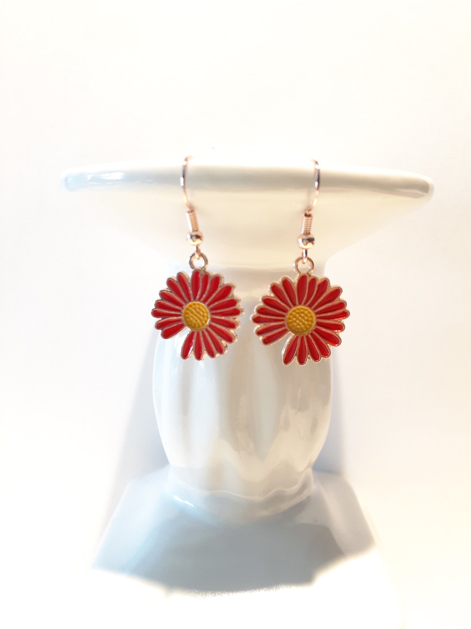 These cute Daisy flower earrings can be worn with any outfits and comes in many different colors. The earring hook is made of hypoallergenic wire for those sensitive ears.