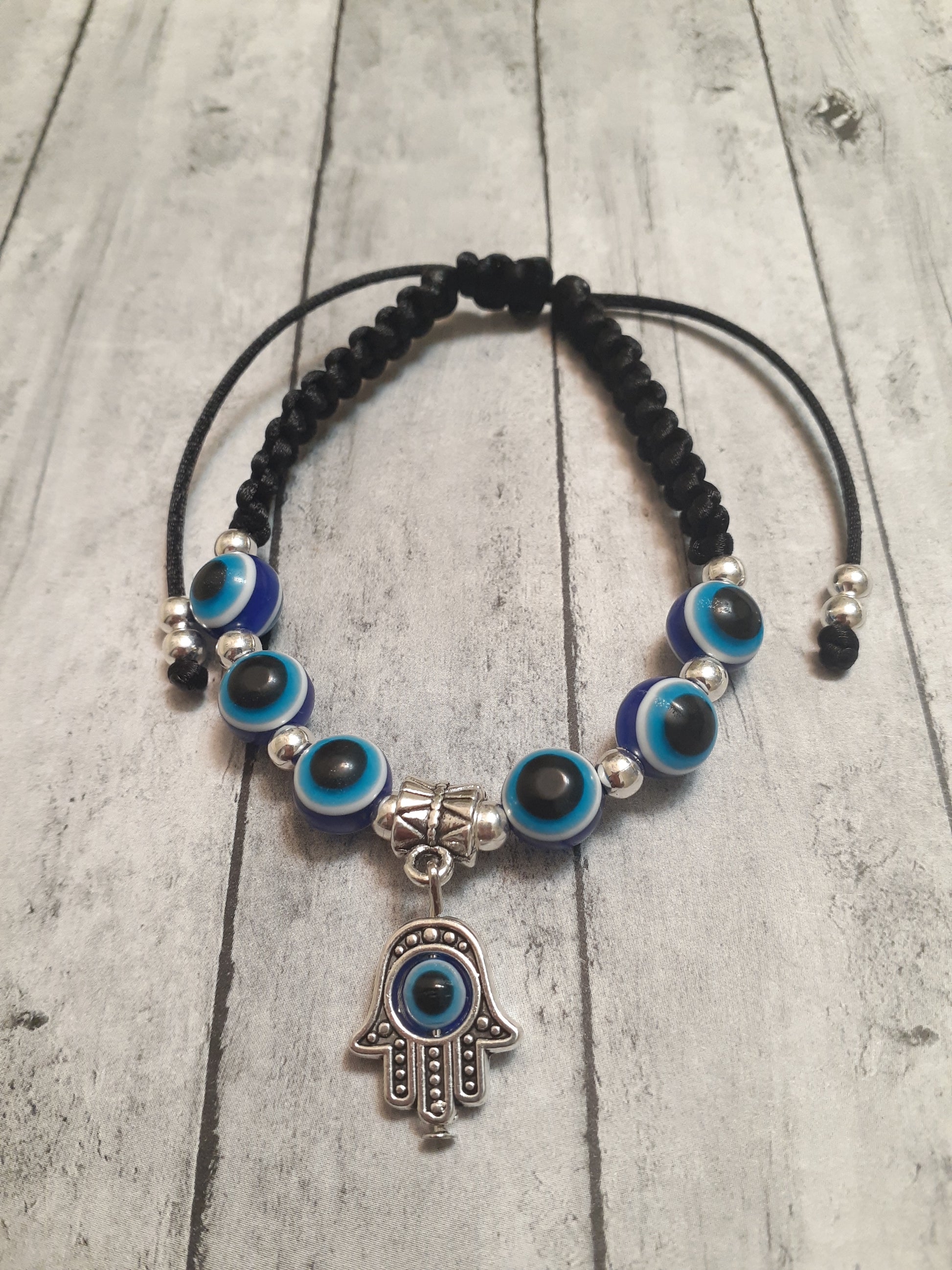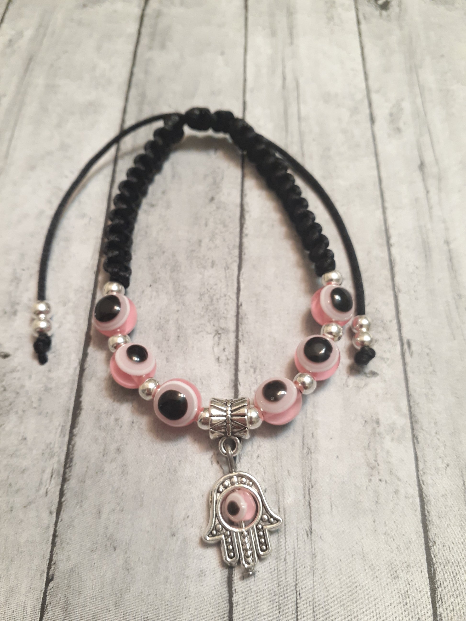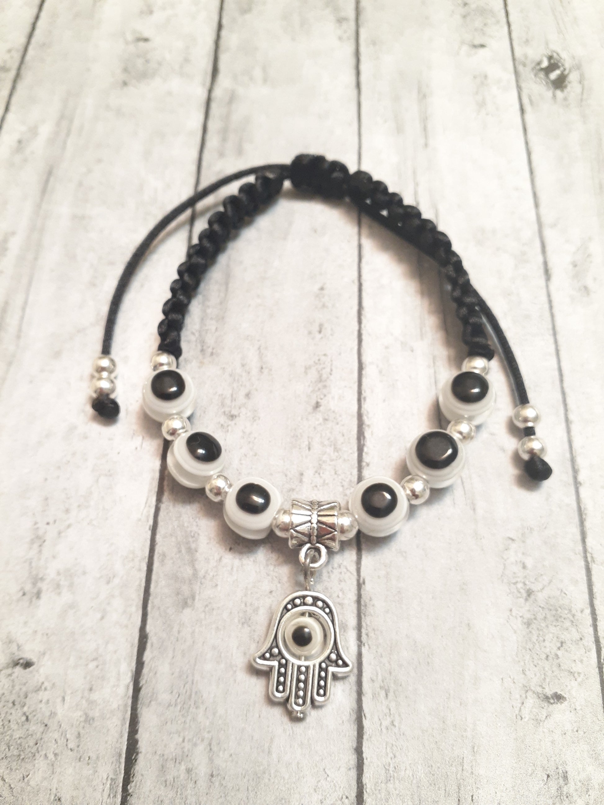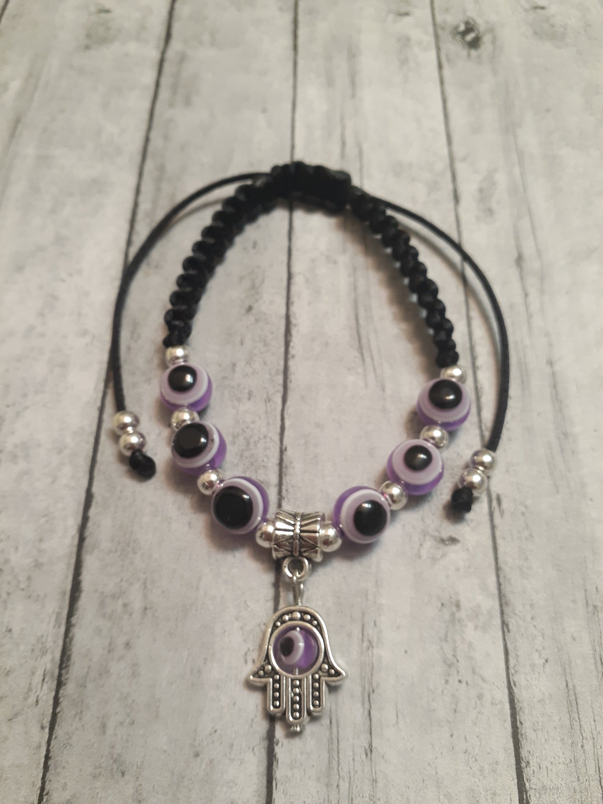 These bracelets are very comfortable and adjustable. The bracelet expands to 7 inches and it comes in 8 different colors. The closure is a sliding knot. It also comes with the Hamsa hand in the middle.