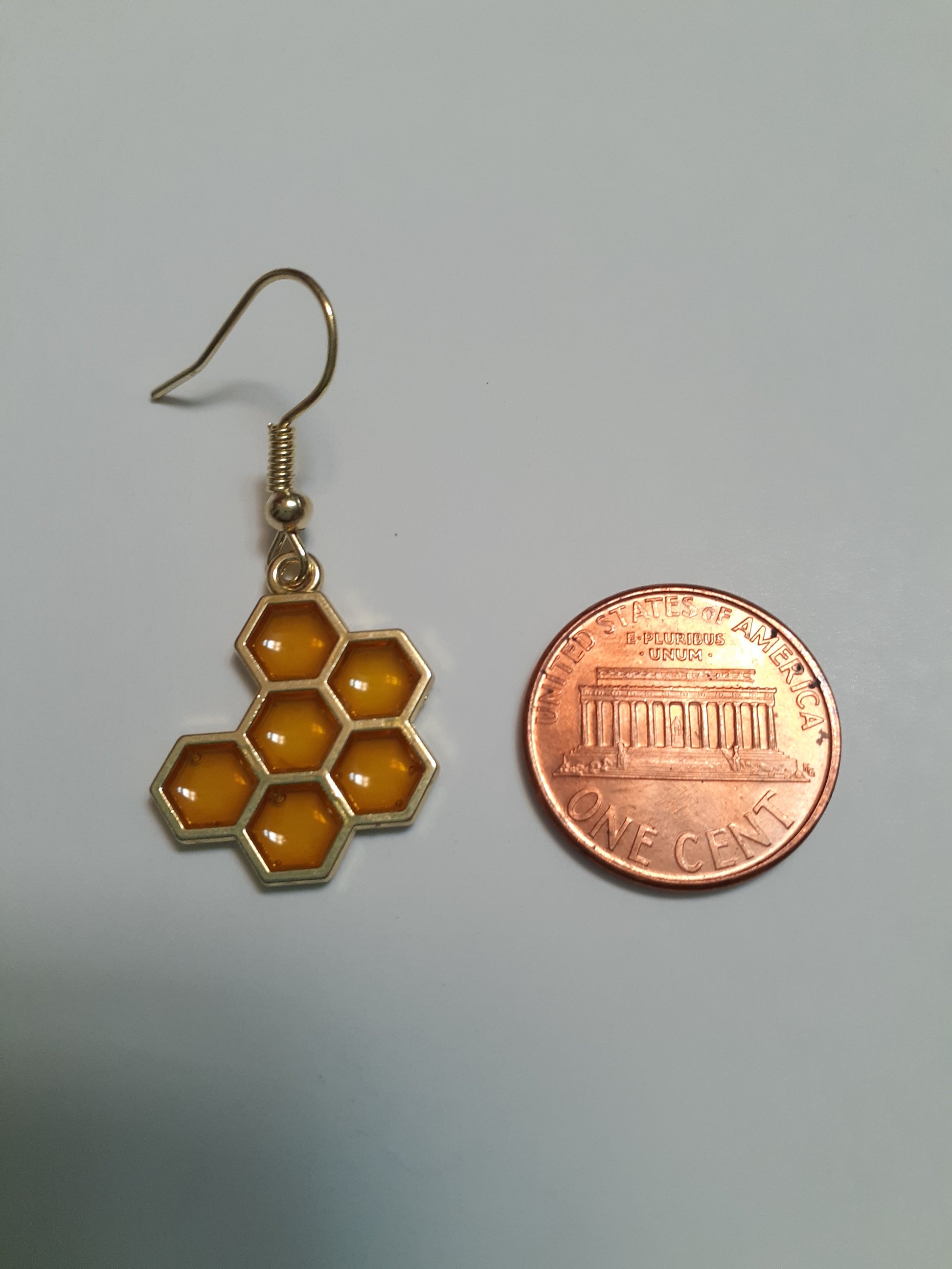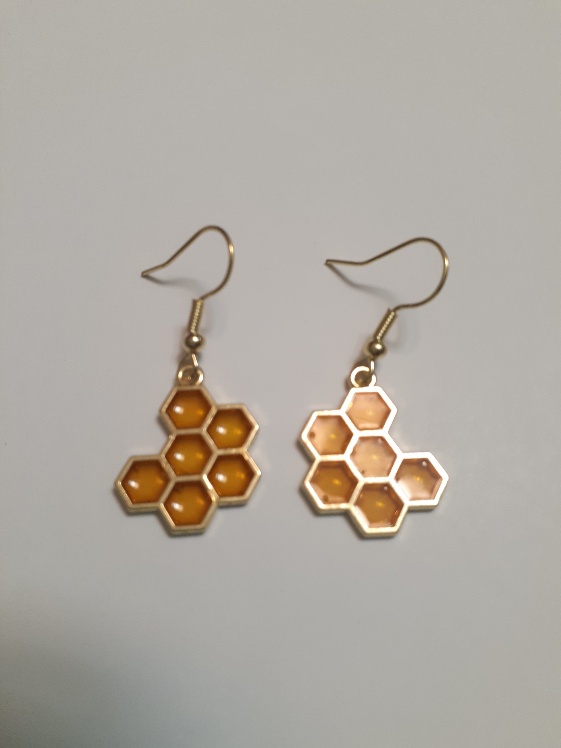 These adorable and cute earrings are very light, and the honeycomb is made of a transparent enamel and catches the light. The ear wire is made of hypoallergenic material.