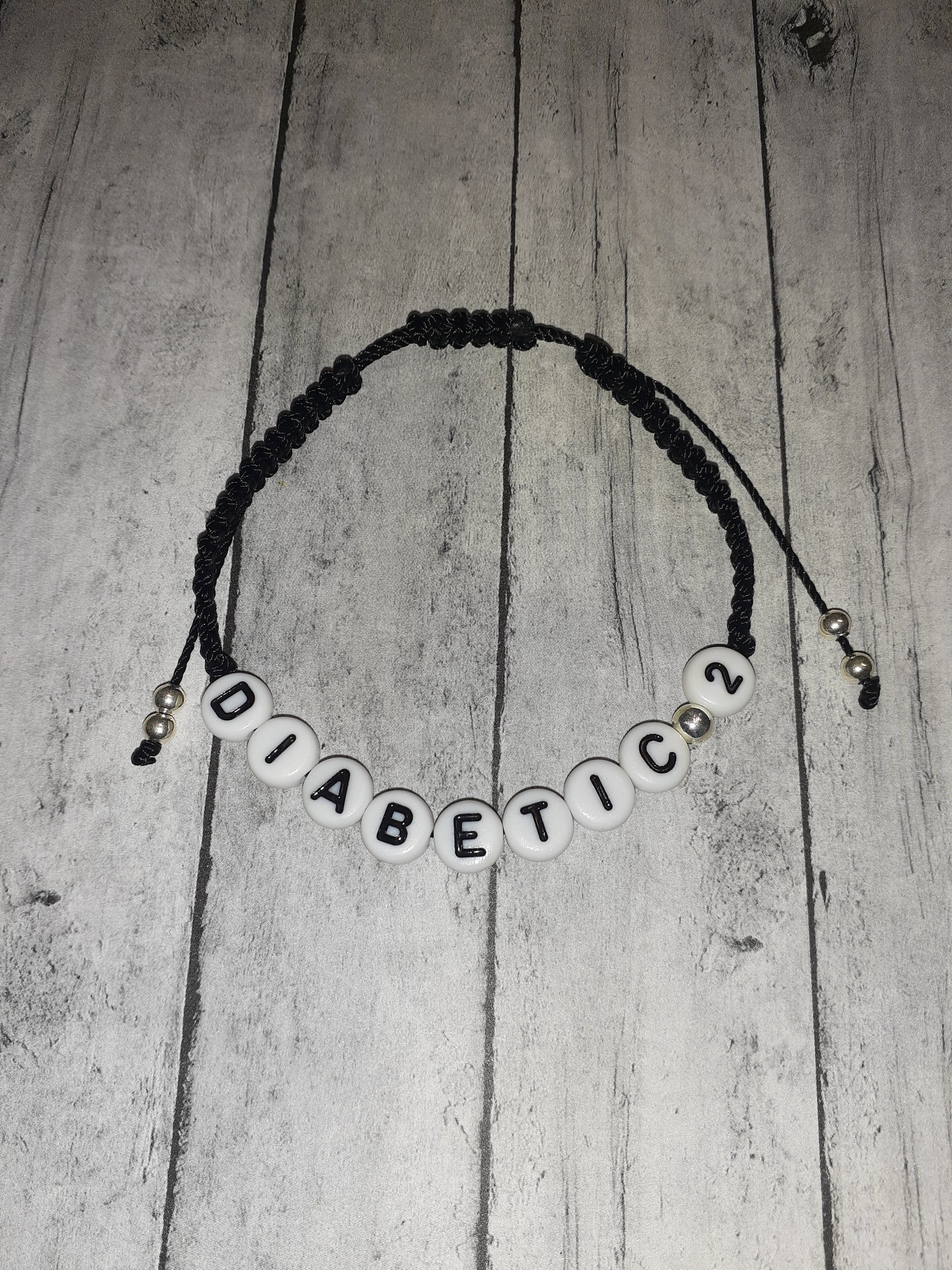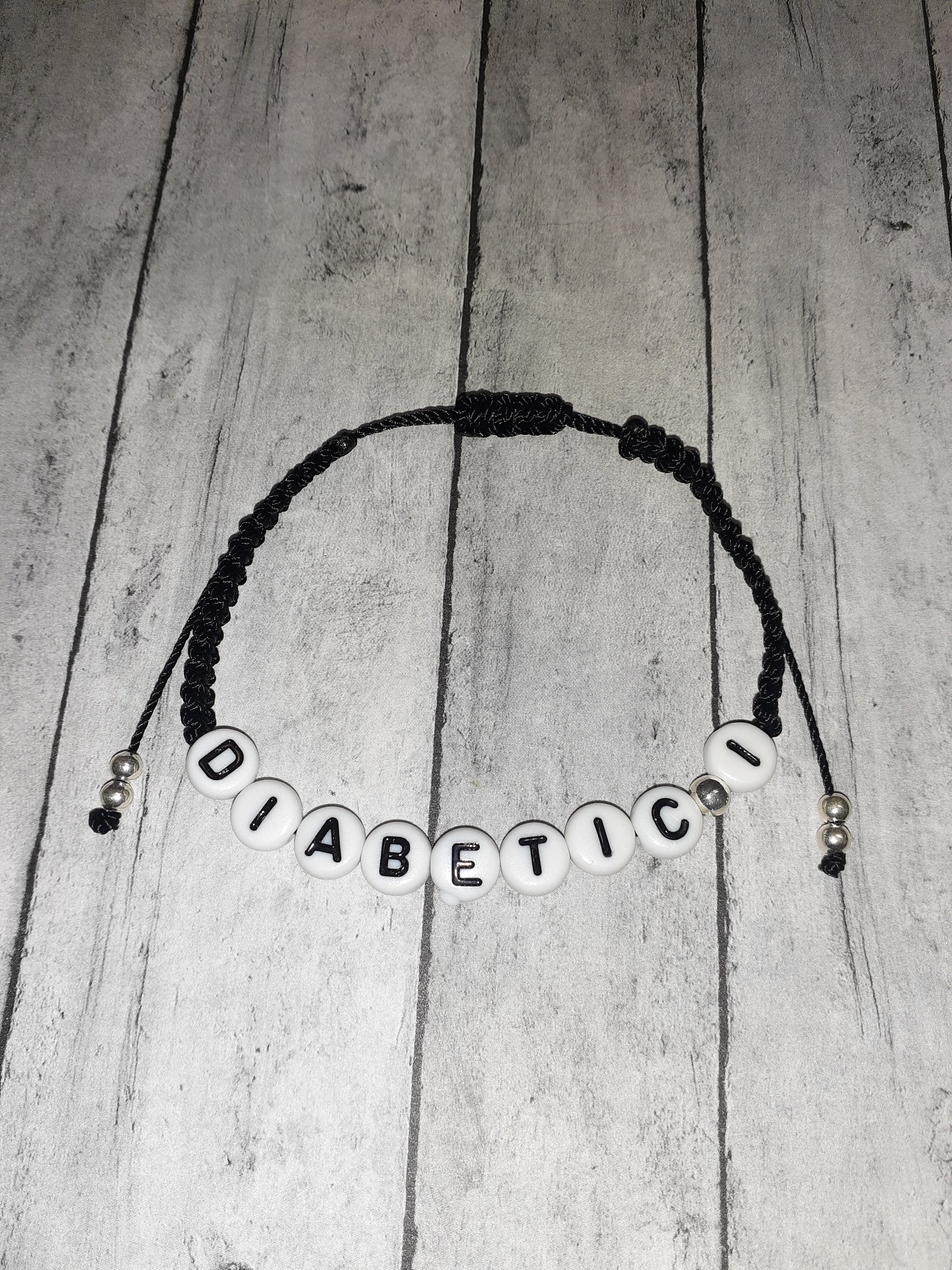These bracelets are people who suffers from diabetes type 1 and 2. The bracelets are made of macrame cording and can expand up to 10 inches. If you need a larger size, please let me know. I can make them a different color light pink, light and dark purple, royal blue, and red. Just let me know if you want a different color.