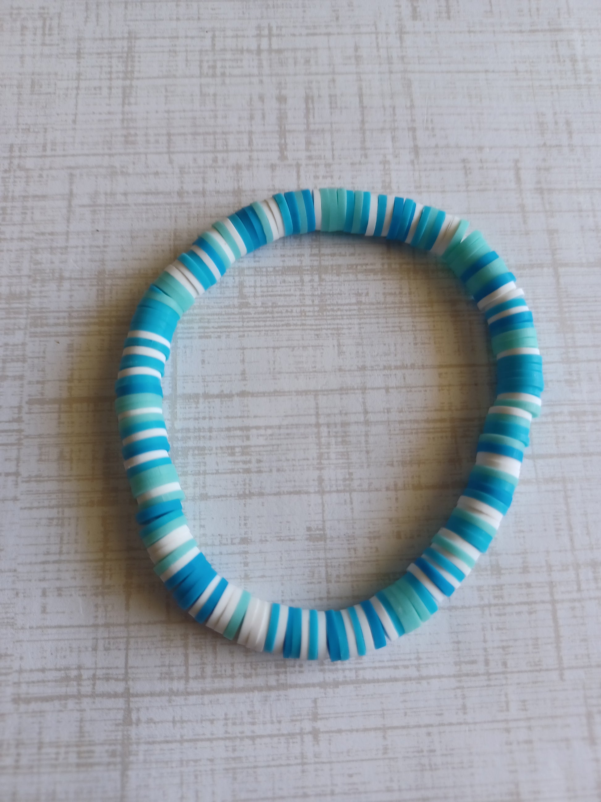 These colorful bracelets are perfect for anytime of the year. They are 7 inches long, made with clay disc beads, and elastic string. You can choose between 4 different unique color combinations. These bracelets would make a great and affordable gift for everyone.