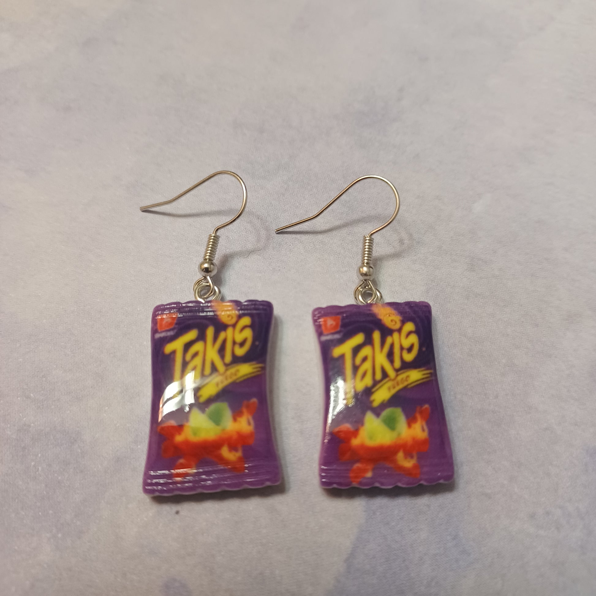 These cute Takis lovers earrings are perfect for those who love those chips. They are very light weight, about 1 inch long, colorful, and the ear wire is made of hypoallergenic for those sensitive ears.