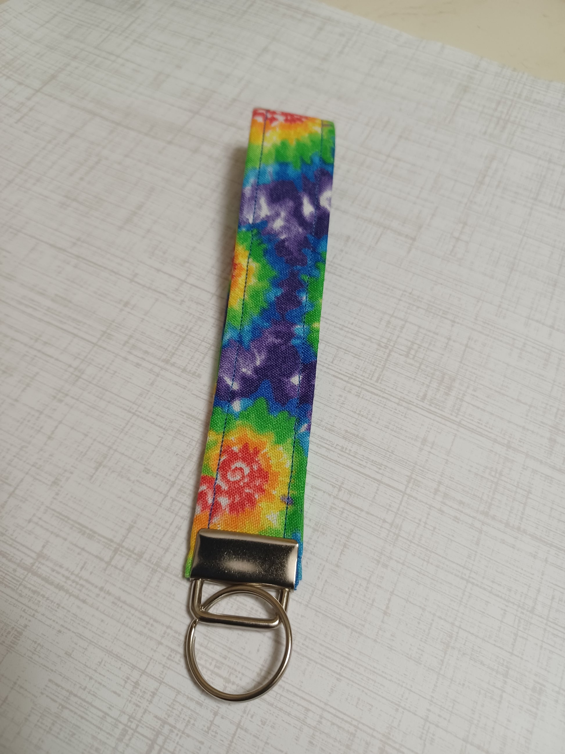 This colorful wristlet is very bright and made of cotton. And you should be able spot any lost keys quickly.