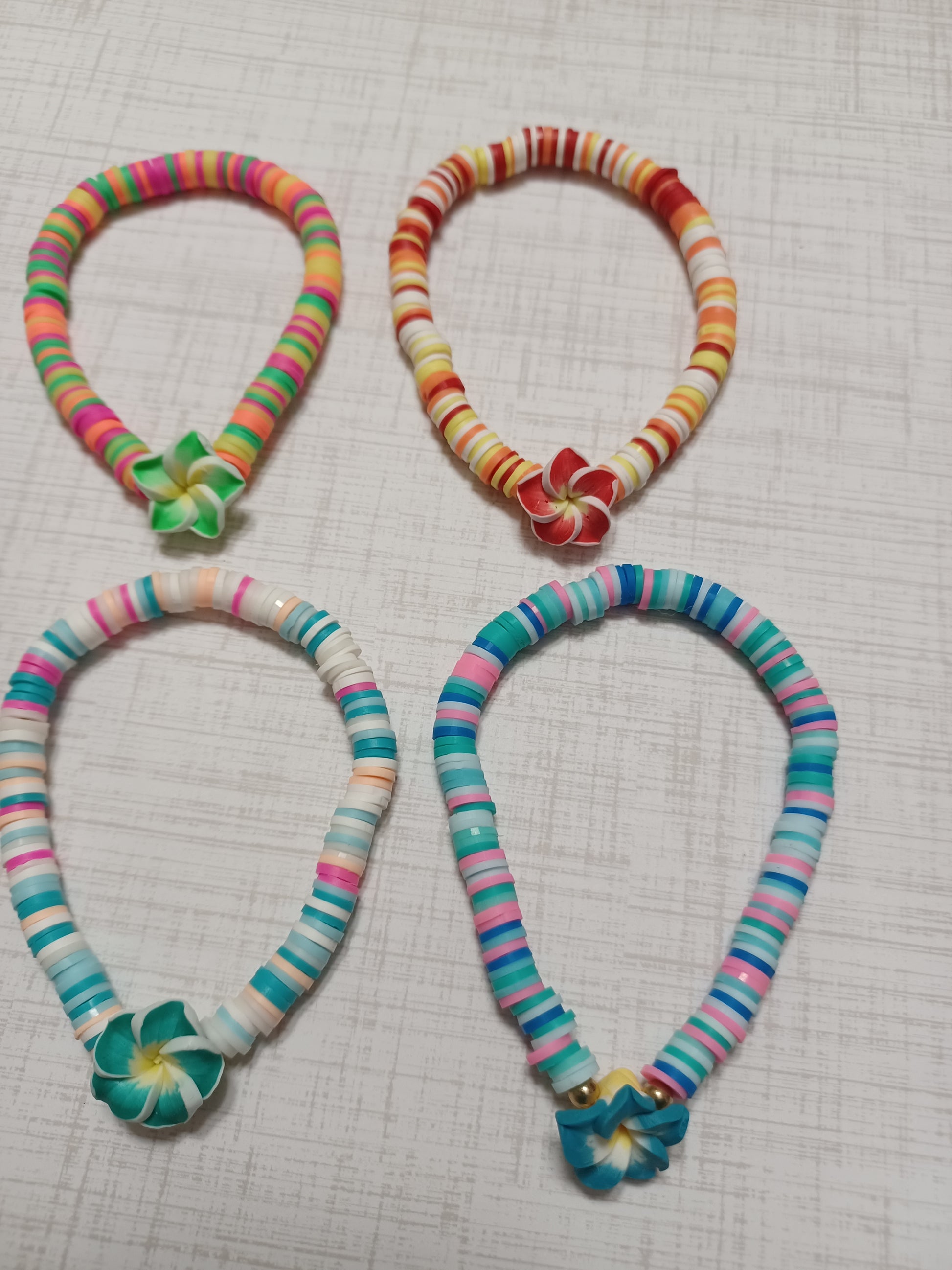 These brightly colored Tropical flower bracelets are made with elastic string, clay disc beads and are about 7 inches long. All orders are made to order. These bracelets can be wore at any time of the year, and would be the perfect gift for a flower lover.